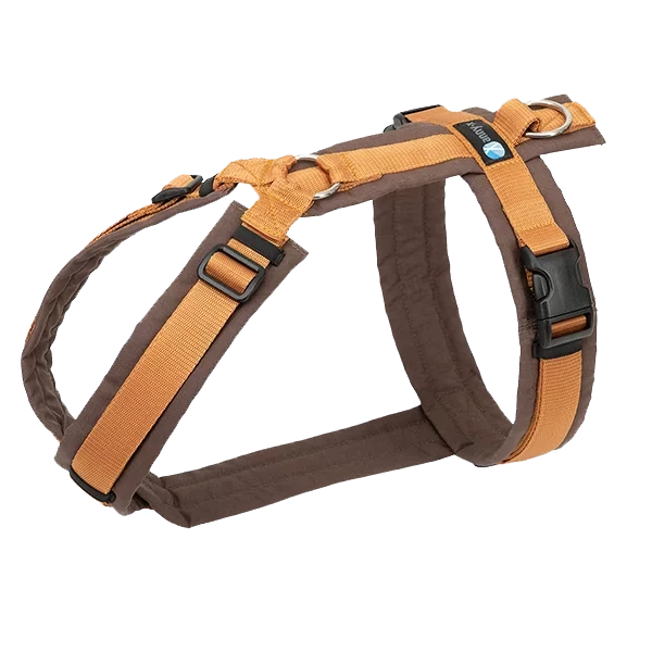 Das gepolsterte Geschirr Fun ist im Hals- und Brustbereich individuell einstellbar und zwei bis zu 70kg Zugbelastung ausgerichtete Steckschnallen (ab Gr. M) sorgen für einen bequemen Einstieg. Das Geschirr ist so aufgebaut, dass es sich dem Körperbau des Hundes ergonomisch anpasst, dadurch entsteht eine optimale Zugverteilung, die den Rücken Ihres Hundes schont. Die umlaufenden Gurte im Brustbereich bilden dank des langen Unterbruststegs einen bewegungsfreundlichen Abstand zu den Vorderbeinen, so dass die Achseln geschont werden.