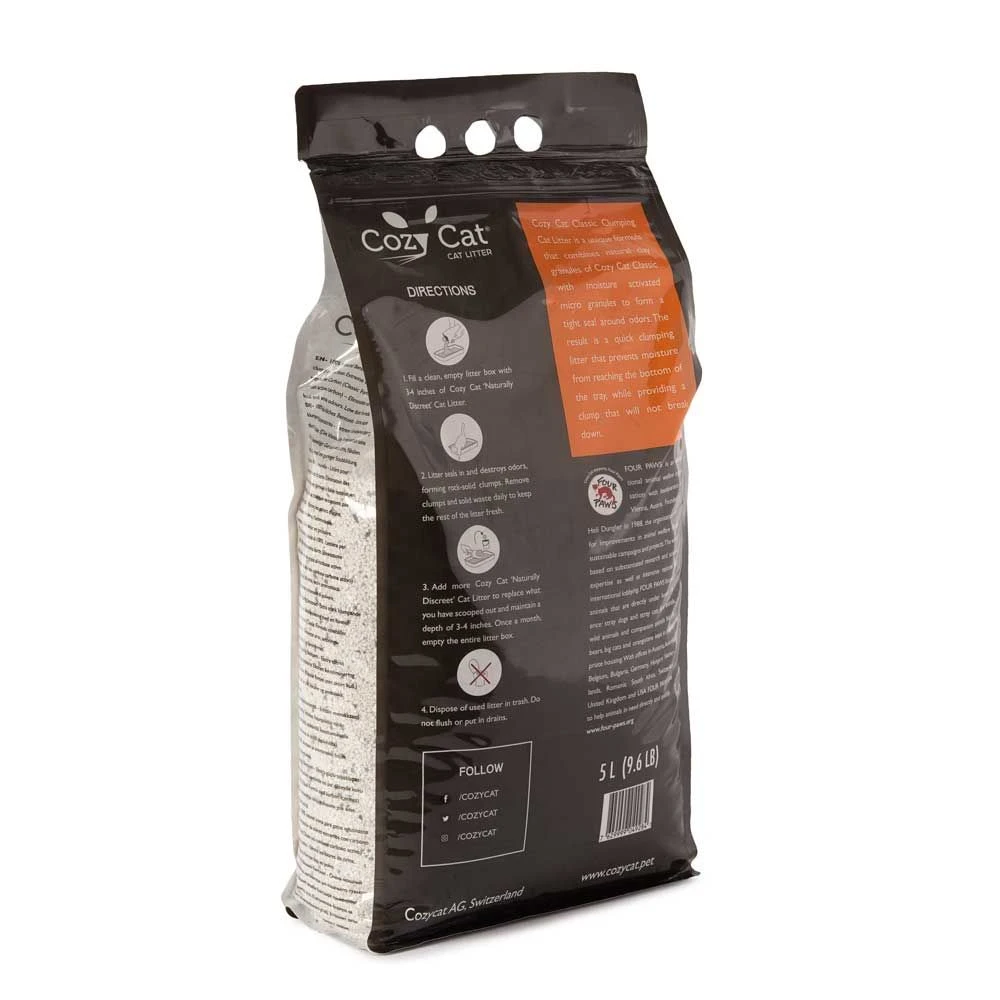 CozyCat Katzenstreu ist eine einzigartige Mischung. Bestehend aus natürlichem Tongranulat kombiniert mit feuchtigkeitsaktiviertem Mikrogranulat, welches Gerüche schnell und konsequent einschliesst. Das Ergebnis ist eine stark klumpende Streu, die verhindert, dass Feuchtigkeit auf den Boden des Katzenklos gelangt und die Klumpen auseinanderbrechen.