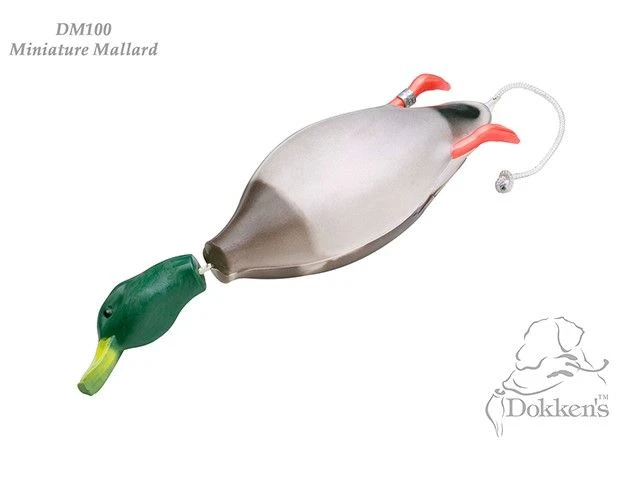 Dokken’s Dead Fowl Miniature Stockente wird aus einem weichen, natürlich anzufassenden Kunststoffmaterial hergestellt. Der frei baumelnde Kopf und die Ständer sind aus einem sehr harten Kunststoff gefertigt. Dieses bewirkt, dass der Hund von sich aus ein Halten des Dummys am Körper bevorzugt und Kopf und Ständer meidet. So lernt er den korrekten Apport von Federwild. Diese Dummys sind identisch mit dem natürlichen Gewicht der jeweiligen Vögel.