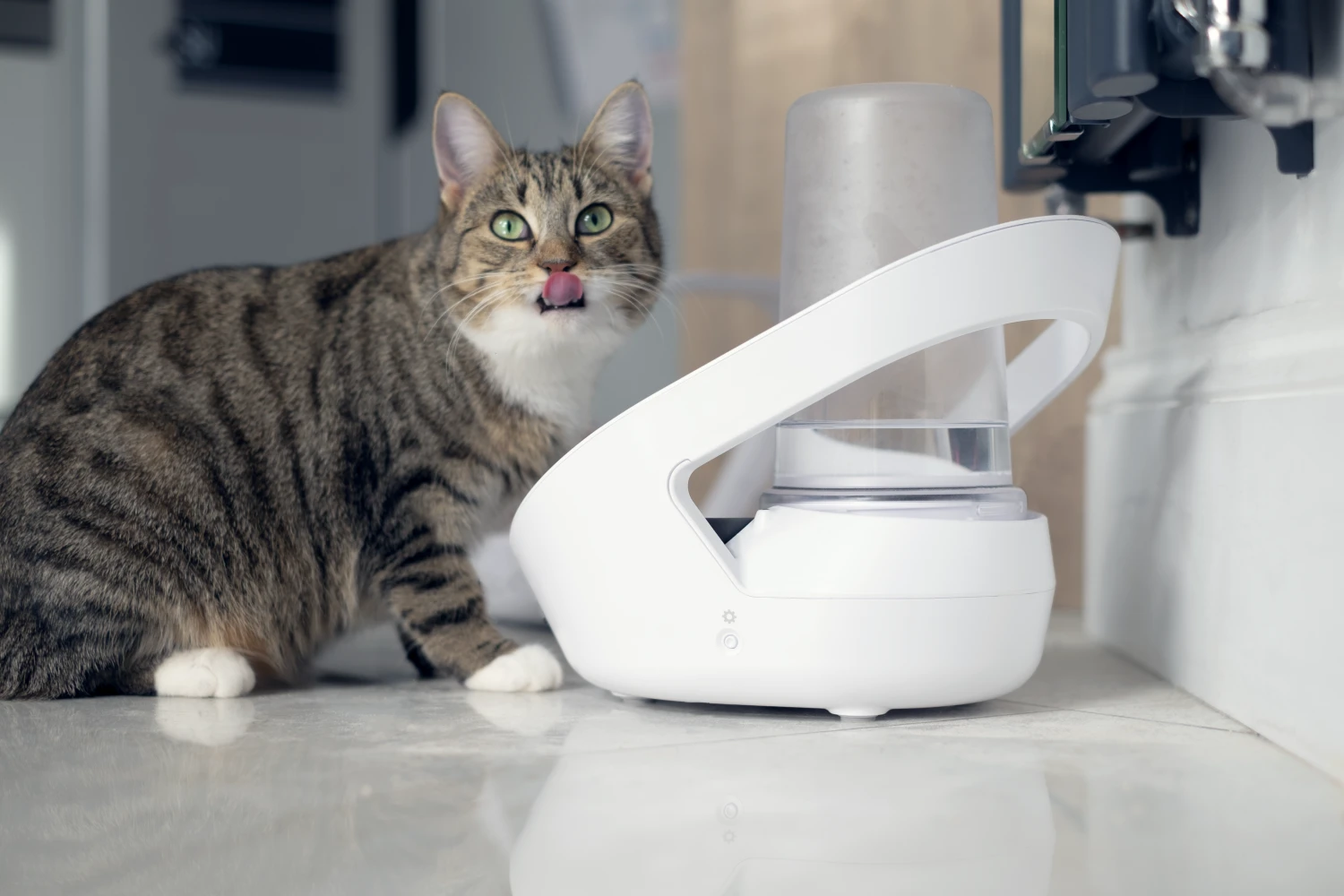 Die Schale von Felaqua Connect wird automatisch aus dem integrierten Reservoir nachgefüllt, während Ihre Katze trinkt. So wird stets frisches Wasser zur Verfügung gestellt, ohne dass sich altes Wasser ansammelt. Zusätzlich erhalten Sie Benachrichtigungen, wenn es Zeit für einen Wasserwechsel ist.