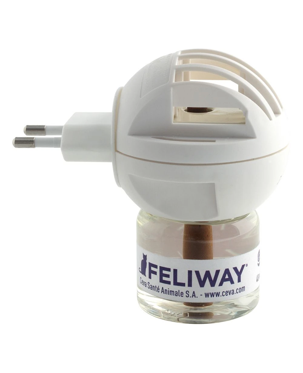 Mit dem FELIWAY® Verdampfer wird Ihr Zuhause zur Wohlfühloase, Spannungen im Mehrkatzenhaushalt lassen nach und auch andere stressbedingte Verhaltensweisen, wie Harnmarkieren, nehmen ab. So verbringen Katzen mehr Zeit in Ihrem Zuhause, das haben wissenschaftlichen Studien belegt. Einfach und komfortabel anzuwenden. Um Ihrer Katze die nötige Sicherheit und Geborgenheit zu schenken, lassen Sie den FELIWAY® Verdampfer bitte kontinuierlich 24 Std. am Tag über 4-Wochen eingesteckt. Der 48-ml Flakon reicht für eine Daueranwendung von 4- Wochen auf einer Fläche von 50 – 70 m².