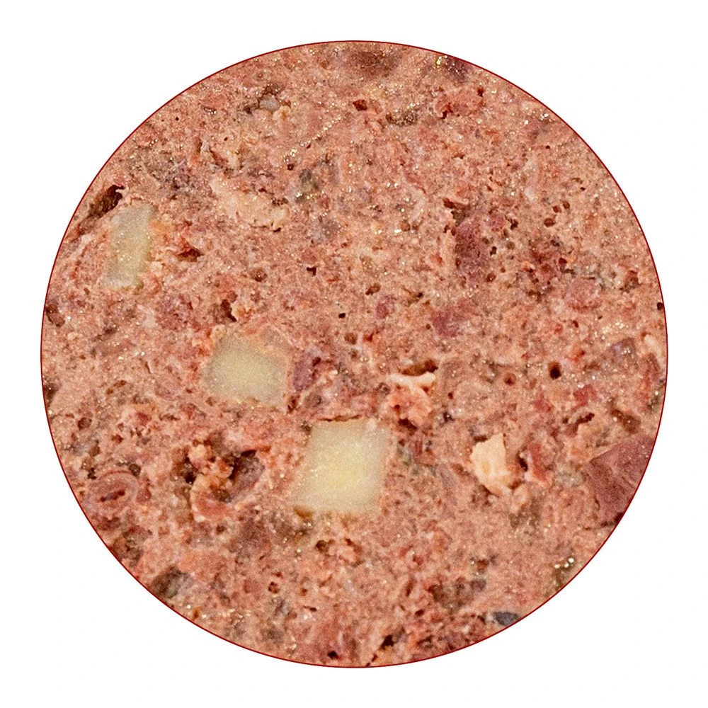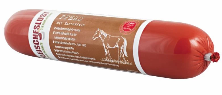- Hauptbestandteil: 90 % frisches Pferdefleisch, 8 % Kartoffeln