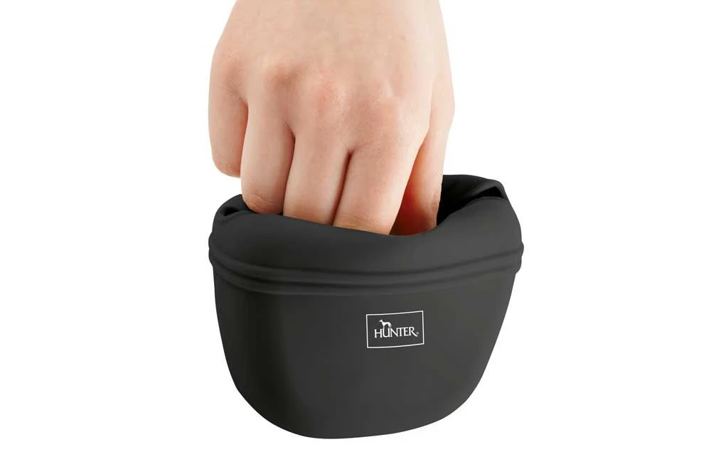 Snackbeutel sind aus dem Leben mit Hunden kaum wegzudenken. HUNTER hat jetzt einen Weg gefunden, die kleinen Helfer noch praktischer zu machen: Der Silikon-Snackbeutel LUGO schliesst sich durch den Magnetverschluss selbst wieder, sodass nichts herausfallen kann. Der formstabile Beutel wird am Gürtel befestigt und hält so die Lieblingsleckerlis des Vierbeiners jederzeit in Reichweite. Der besondere Clou an LUGO: Der Snackbeutel lässt sich einhändig öffnen, sodass der Hundehalter hineingreifen und binnen Sekunden die begehrten Snacks hervorzaubern kann. Gefertigt ist LUGO aus pflegeleichtem, lebensmittelechtem Silikon. Das Material bietet den Vorteil, dass es keine Gerüche oder Geschmack annimmt und einfach ausgewischt bzw. abgewaschen werden kann.
