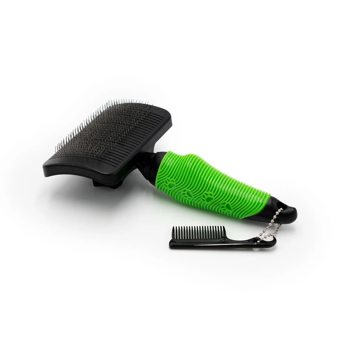 Die Zupfbürste verfügt über einen Selbstreinigungsmechanismus, der es ermöglicht, das Haar in einem einfachen Schritt freizugeben. Dies erleichtert die Anwendung und macht die Pflegeroutine sowohl für das Tier als auch für den Besitzer komfortabler.