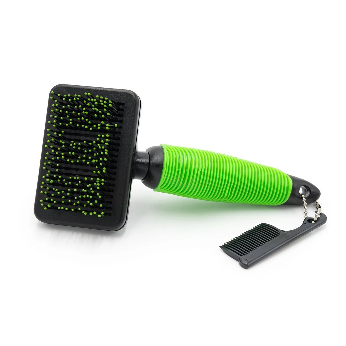 Die Zupfbürste verfügt über einen Selbstreinigungsmechanismus, der es ermöglicht, das Haar in einem einfachen Schritt freizugeben. Dies erleichtert die Anwendung und macht die Pflegeroutine sowohl für das Tier als auch für den Besitzer komfortabler.