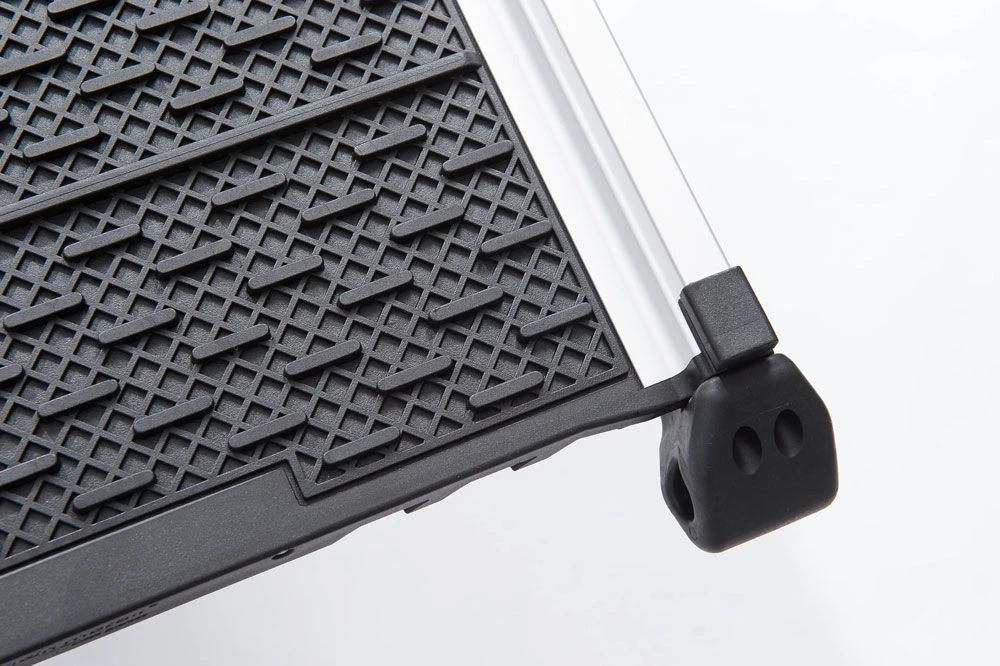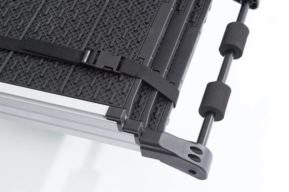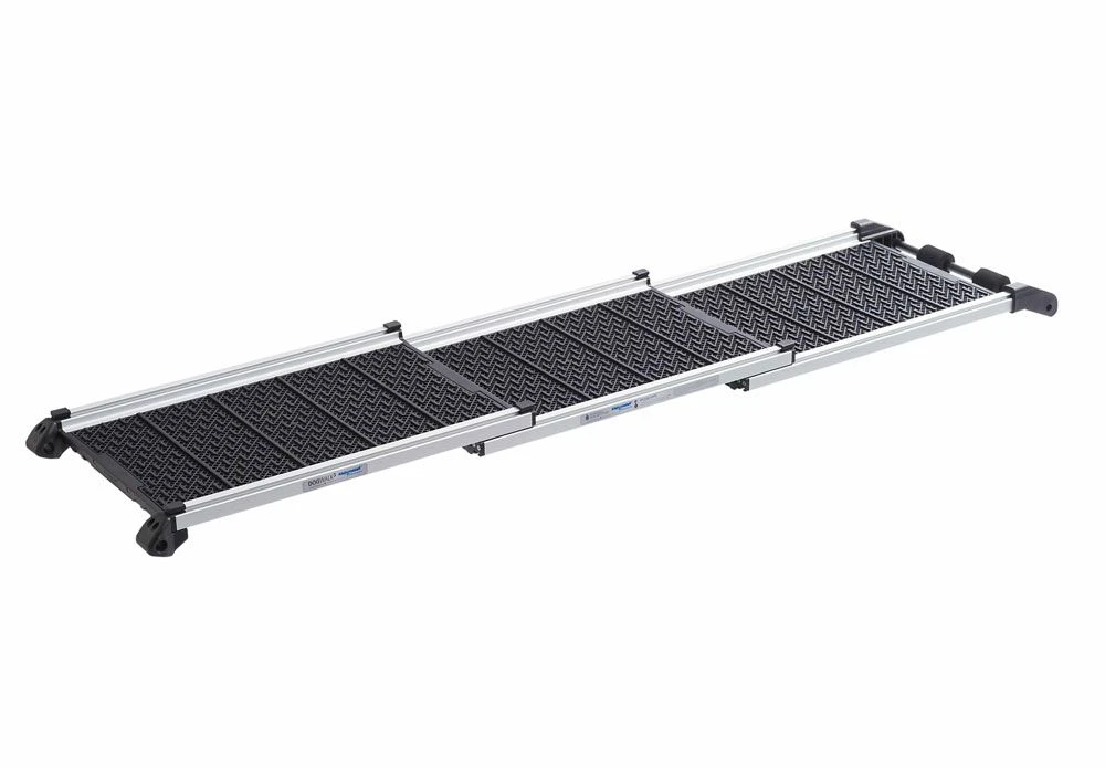 3-fach zusammenschiebbar. Hochwertiger Aluminium- und Kunststoffmix. „Super Grip“ der Lauffläche für sicheren Tritt. Schnell und platzsparend verstaut. Stufenlos verstellbar von 73 bis 163 cm. Modernes Design. Abgewinkelte Auflagefläche mit Schaumstoffpolsterung. Inkl. Befestigungsgurt zum sicheren Verstauen bei Nichtgebrauch. Erleichtert Ihrem Hund das Ein- und Aussteigen in alle gängigen Fahrzeuge. Belastbarkeit auf 4 Pfoten: max. 85 kg.