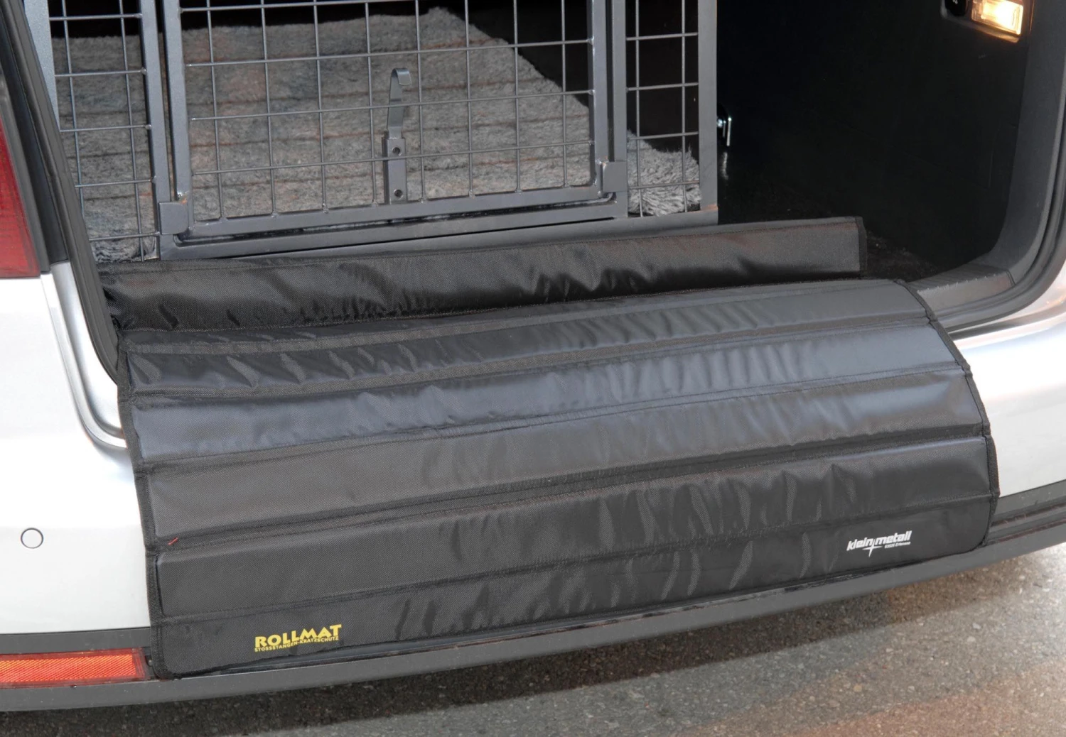 Länge 64cm x Breite 80cm. Schützt die Stossstange vor Kratzern und Verschmutzungen und verhindert, dass der Hund auf der Stossstange ausrutscht. Optimal geeignet für all PKW’s mit Ladehaken im Kofferraum. Schnell und einfach angebracht und sehr leicht zusammengerollt verstaubar. Test.