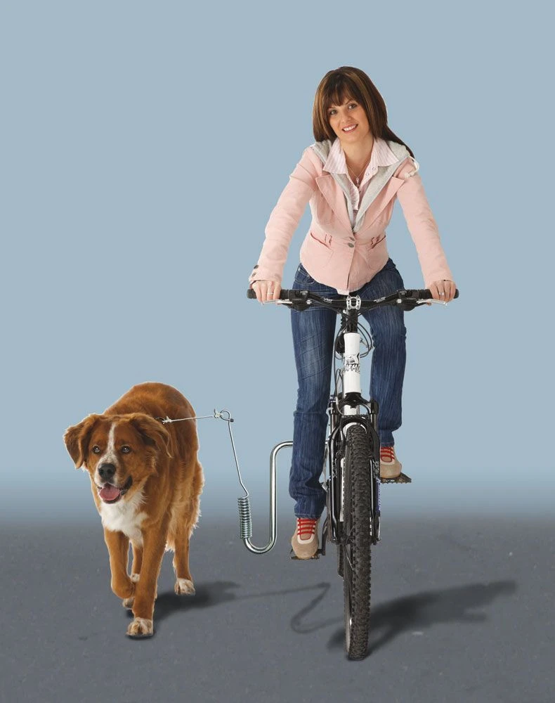 Leinen Sie Ihren Hund direkt am Fahrrad an, ohne dass er Sie umwerfen kann. Mit dem Dogrunner Springer Fahrradhalter ist eine entspannte Fahrradtour problem- und gefahrlos möglich: Ihr Hund ist am Fahrrad angeleint und kann Sie nicht aus dem Gleichgewicht bringen. Über ein Rohrstück, verbunden mit einer niedrig angebrachten Stahlfeder, wird kräftiges Ziehen und Rucken des Hundes abgefangen. Sie haben beide Hände frei zum Lenken. Passend für Rundrohrrahmen von 25-36mm Durchmesser. Nicht geeignet für viele E-Bikes, da zu wenig Platz bzw. der Rahmen nicht rund ist.