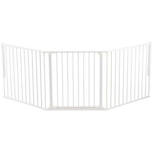 Das Konfigurationsgitter besteht aus 2 beweglichen Gitterelementen und 1 Türelement aus Metall mit abgerundeten Kunststoffecken. Kann beliebig eingestellt werden und ist auch für nicht parallel laufende Wände geeignet. Mit den erhältlichen 72 cm-Verbreiterungen (nicht im Lieferumfang enthalten) kann das Gitter beliebig erweitert werden. Doppelt gesicherter Handgriff, einhändiges Öffnen der Sicherheitstüre möglich. Inkl. Clip-off Wandbeschläge für eine schnelle Demontage. Lässt sich zur Aufbewahrung vollständig zusammenklappen. Für Öffnungen von 90-225cm. Gitterabstände: 6cm