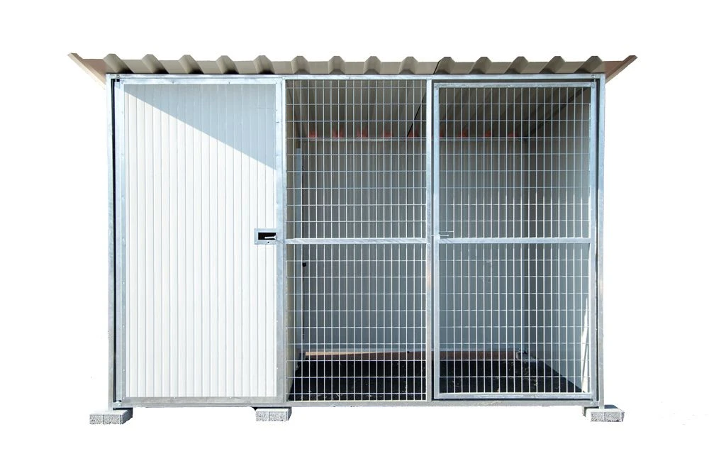 Gleiches Prinzip und Grundfläche wie der Meiko Hundewzinger Thermo Classic, jedoch kombiniert mit einem geschlossenen Zwingerabteil. Der Hund gelangt durch einen Durschschlupf (Seilzug/Umlenkrolle) in den geschlossenen Zwingerteil. Exklusive Boden. Ideal als Nachtquartier oder bei widrigen Wetterbedingungen. Nutzung als Wurfhaus, auf Wunsch mit Infrarot Strahlungswärme. Trennung der Welpen von der Mutterhündin. Als Lager für Futter, Trainingsmaterial oder sonstigen Dingen, welche vor Hitze geschützt werden sollen.