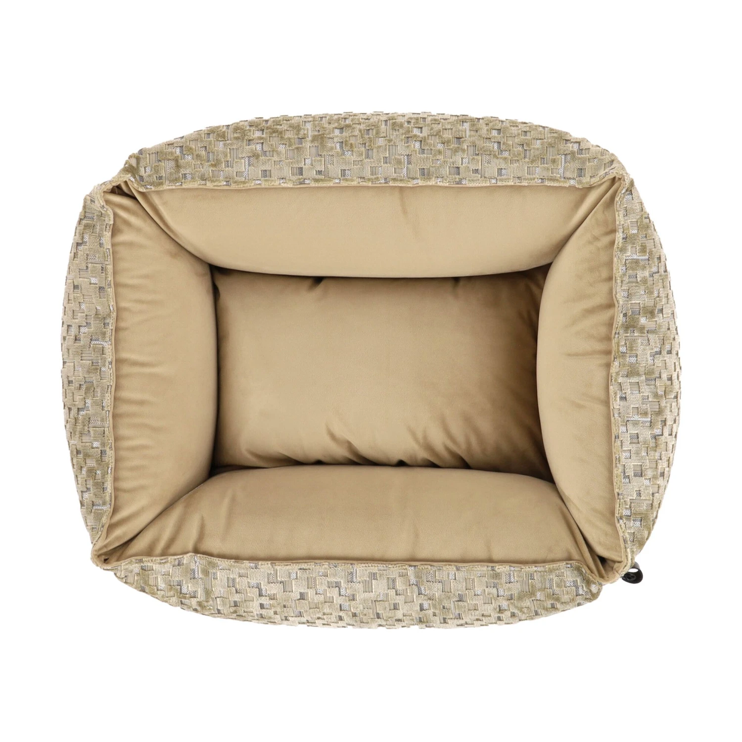 Das Petlife Cocoon Siena Hundebett vereint Funktionalität mit Komfort für Ihr Haustier. Gefertigt aus einem hochwertigen Mix aus Jacquard, bestehend aus 50% Polyester und 50% Viskose, bietet dieses Bett eine atmungsaktive und weiche Liegefläche. Das Innenkissen, gefüllt mit recyceltem HCS-Faserfüllstoff, unterstützt das Wohlbefinden Ihres Hundes durch eine zusätzliche Polsterung. Zudem ist es herausnehmbar und vereinfacht somit die Reinigung.