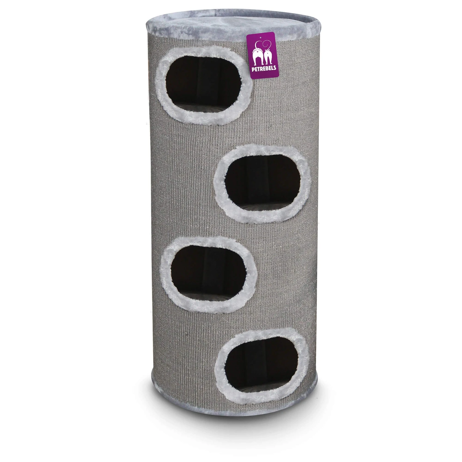 Der GIANT DOME 120 ist komplett mit einem robusten Teppich aus Natursisal tapeziert und bietet ein 360 Grad Rundum-Kratzflächen-Potenzial. Die Eingänge sind liebevoll mit Plüsch abgesetzt. Mit 4 cm ist die Bodenplatte so stark gemacht, dass GIANT DOME 120 die richtige Bodenhaftung hat. Die obere Liegefläche haben wir einfach als Kuschelbett umfunktioniert und mit einer weichen Füllung versehen. GIANT DOME 120 hat 4 Zugänge und 4 Ebenen innen. Die Ebenen sind durch einen Zugang verbunden, so dass Katze den GIANT DOME nicht verlassen muss, um nach oben zu klettern. GIANT DOME 120 ist für alle Katzen geeignet, richtet sich aber besonders an grosse und kräftige Katzen.