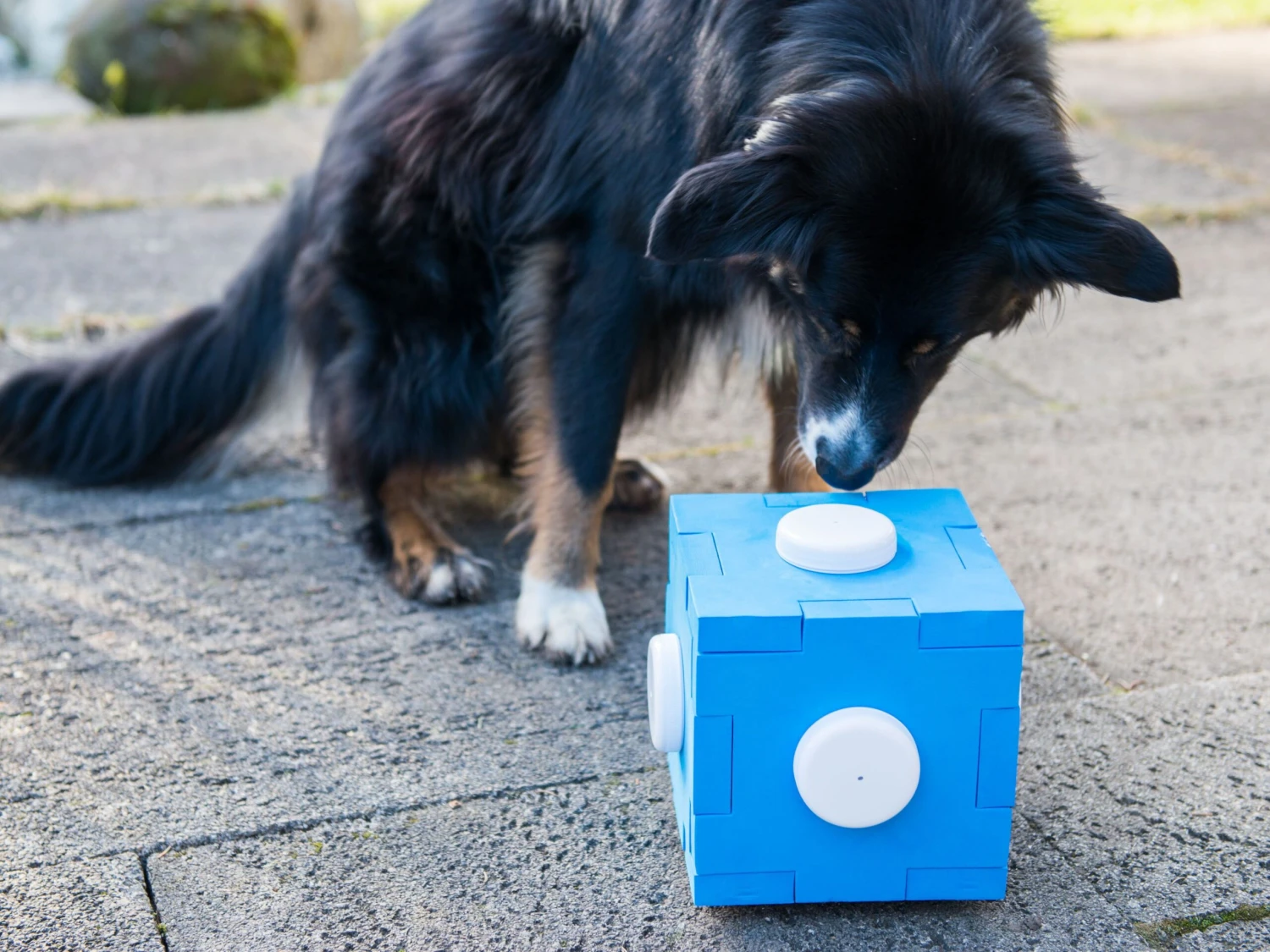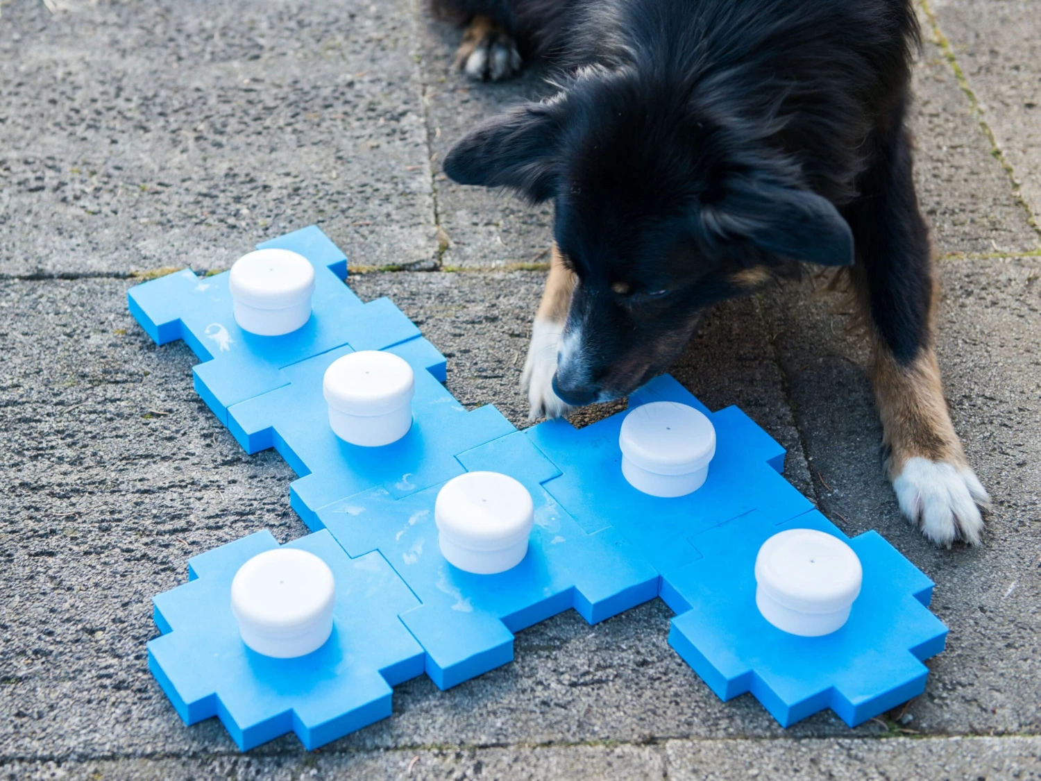 Die Teile können als Würfel zusammengesetzt oder am Boden aneinander gelegt werden. Der Einsatz der Nase gibt dem Hundehirn etwas zu tun und fördert das konzentrierte Arbeiten. Nasenspiele lasten den Hund aus, ohne ihn dabei übermässig aufzuputschen.