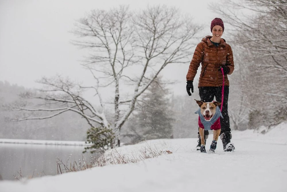 Die Hundeschuhe Ruffwear Polar Trex wurden für Wärme, Halt und Schutz in Winterbedingungen konzipiert. Gefütterter Softshell-Oberstoff bietet atmungsaktive, witterungsbeständige Wärme in extrem kaltem und rauem Wetter. Die von Ruffwear entwickelte Vibram®-Laufsohle sorgt auf gefrorenen Oberflächen für optimalen Halt. Das Verschlusssystem kombiniert den Klettverschluss mit Befestigungsteilen, die um den engsten Teil des Hundebeins geschnallt werden und so für eine gute Passform sorgen. Die übergezogene Dehngamasche schützt den Klettverschluss vor Schnee und hält den Schuh besser an der Pfote.