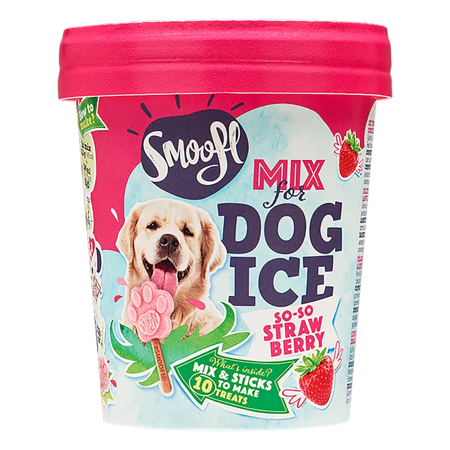 Verwöhnen Sie Ihren Vierbeiner mit der Smoofl Hundeglace – eine leckere und gesunde Erfrischung, perfekt für Sommertage. In nur 60 Sekunden ist die Glace einsatzbereit und wird in einer Mischung mit 10 Essstäbchen geliefert. So kann Ihr Hund auf spielerische Art und Weise jeden Teil der Eisleckerei geniessen – für unterhaltsame und genussvolle Momente. Die Smoofl Hundeglace ist so konzipiert, dass sie Ihren Hund optimal versorgt: Sie ist laktosefrei, getreidefrei und fettfrei. Damit ist sie nicht nur ein süsser Genuss, sondern auch gesund und auf die Ernährungsbedürfnisse Ihres Hundes abgestimmt. Ein Becher Smoofl-Mix reicht für 10 kleine, 8 mittlere oder 6 grosse Eishäppchen. Bitte beachten Sie, dass die Eisform separat bestellt werden muss.