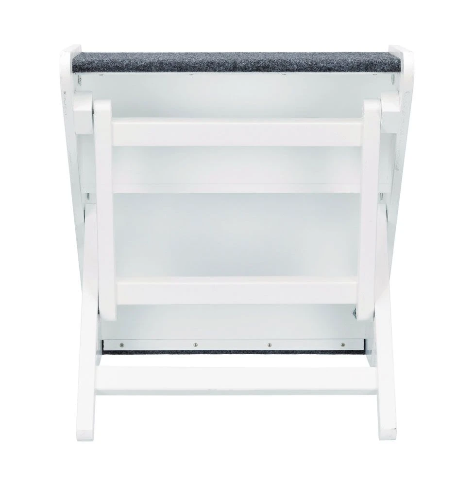 Die Treppe ist zusammenklappbar und kann platzsparend verstaut werden.