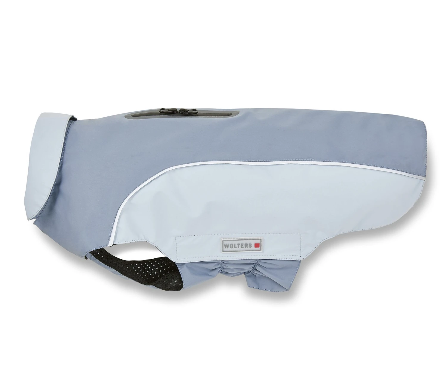 Ein echter Hundemantel-Allrounder für alle Jahreszeiten. Gut geschützt und trocken auch bei Wind und Schmuddel Wetter? Kein Problem mit der Wolters Regenjacke Easy Rain für Hunde. Die Jacke besteht aus pflegeleichtem Polyester, hat ein angenehmes Innenfutter aus einem leichten Netzmaterial und reflektierende Streifen für eine bessere Sichtbarkeit in der Dunkelheit. Ein weiches Stretchgummi am Bauch sorgt für einen angenehmen Tragekomfort. Klettverschlüsse an Hals und Bauch erleichtern das Anziehen der Jacke. Dank einer in den Stoff eingeschweissten, wasserdichten Reissverschlussöffnung kann der Vierbeiner durch den Mantel am Geschirr ganz unkompliziert angeleint werden.